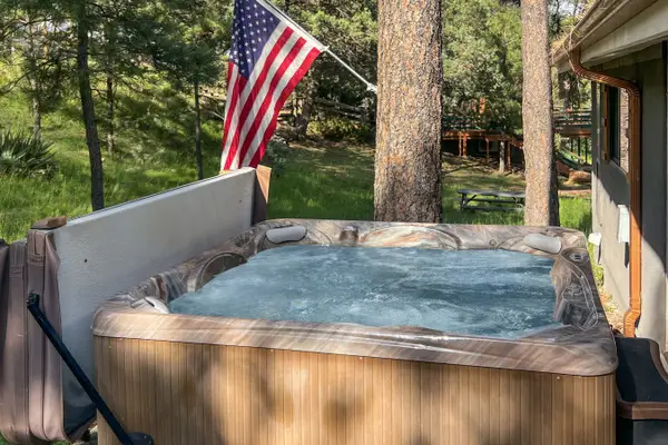 Escape to this charming cabin in the woods- with A/C! Completely outfitted with everything you will need for the perfect getaway, this home will not disappoint! Enjoy your personal hot tub surrounded by beautiful pine trees, or cozy up on the sofa with hot cocoa next to the beautiful stone fireplace! Wildlife including deer, elk, and the occasional moose frequent the cabin and surrounding areas, which makes for such a cool experience! Plush linens throughout all beds and soft white towels are supplied for your stay. The kitchen is completely outfitted with our signature KitchenAid Stand Mixer, a Keurig coffee maker with K-cup option, multiple spices, Ninja Blender, tea kettle, Crockpot, and more... No detail spared! We also offer, board games, stocked coffee, and tea items... the list goes on! This cabin also comes equipped with AC!! We make your stay with us as convenient, luxurious, and as enjoyable as possible by providing tons of surprising amenities. Plenty of room to cook and hang out with family or friends makes for the perfect year-round getaway!