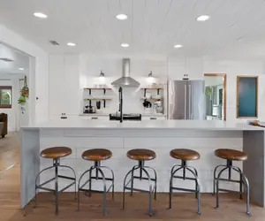 The primary bedroom with an ensuite bathroom, bedrooms 2,3, and the shared full-sized hall bathroom are located in a hallway with a pocket door you can easily shut for added privacy! Each bedroom offers comfortable beds, sound machines, and alarm clocks with USB ports for easily charging your devices. The primary bedroom boasts a king-sized bed, TV, a desk for remote working, and an ensuite bathroom with a large walk-in shower, double vanity, and walk-in closet. Bedroom 2 has another king-sized bed while bedroom 3 holds a queen-sized bed and a set of twin bunk beds! The full shared bath holds a combo tub/ shower, which makes it easy to bathe any kiddos on your trip! The 4th bedroom is located off of the kitchen (full bed) and has its own TV as well.