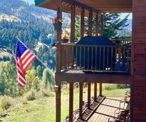 The ultimate Yellowstone escape! Breathtaking views of the gorgeous Montana mountainside from nearly every room, the constant sound of Bear Creek running just below, and located only 6 miles to the North entrance of Yellowstone National Park (the ONLY year-round entrance) where you will have access to dramatic canyons, wildlife viewing, lush forests, alpine rivers, hot springs, and gushing geysers; including its most famous, Old Faithful.
