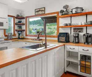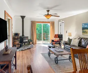 We have your comfort in mind and provide plush linens, comfy beds, Smart TVs, hairdryers, shampoo/conditioner, and a decent amount of essential supplies to get you started! We have completely outfitted the home with vacationers in mind. You will have everything you need for the perfect getaway. Enjoy two outdoor decks with beautiful mountain views or cozy up on the sofa with hot cocoa next to the beautiful wood-burning fireplace. You can easily enter the main level (upper floor) from the parking area with the ramp to avoid stairs. The kitchen is very well-equipped with items like a KitchenAid stand mixer, Keurig, coffee maker, crockpot, blender, baking dishes, and more! Adjacent to the kitchen is a dining area with seating for six.