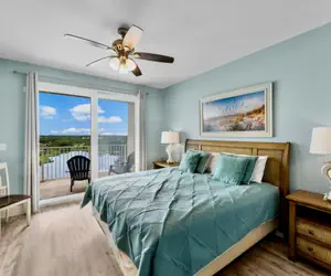 → Master Bedroom: Relax in a king bed with Lake views and private balcony access.