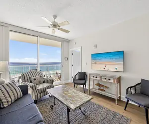 Perfect for families and groups, the condo offers a bright open layout with floor-to-ceiling Gulf views from the living area and master bedroom.
