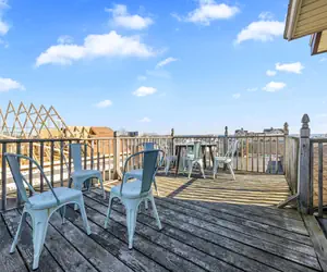 Welcome to your Downtown Old Orchard Beach retreat, perfectly located on the main strip! This spacious 4-bedroom, 2-bath unit offers stunning ocean views, a rooftop deck for dining or relaxing, and easy beach access. Enjoy a unique layout with bar-style seating for 6, cozy bedrooms, and multiple TVs. Walk to shops, restaurants, and attractions, and soak up the vibrant summer vibes. Parking nearby.