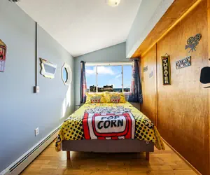 Unwind in themed bedrooms with playful decor, bright windows, and cozy bedding. Each of the 4 bedrooms offers a unique personality, perfect for a fun and memorable stay.