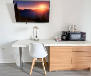 - Coffee maker, microwave, and a minibar fridge. For added convenience, the studio includes essential items such as towels and linens.