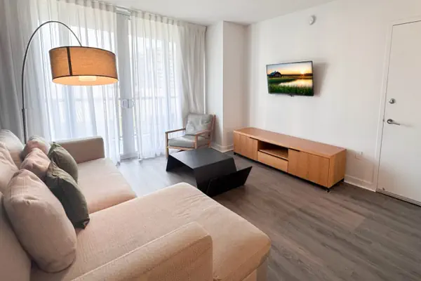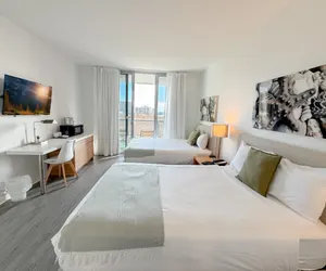 Our luxurious 2-bedroom apartment in Hallandale Beach, is located in one of the best condo-hotels in Hallandale Beach, called BeachWalk. This modern apartment features a master bedroom and an additional bedroom, both with private bathrooms, ensuring you have everything you need for a comfortable stay, whether for a weekend getaway or a longer stay.