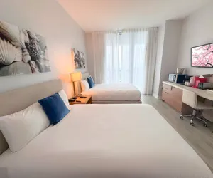 Our luxurious 2-bedroom apartment in Hallandale Beach, is located in one of the best condo-hotels in Hallandale Beach, called BeachWalk. This modern apartment features a master bedroom and an additional bedroom, both with private bathrooms, ensuring you have everything you need for a comfortable stay, whether for a weekend getaway or a longer stay.