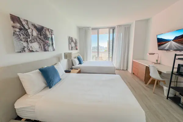 Welcome to your elegant and inviting studio apartment at Beachwalk in the heart of Hallandale Beach. This chic space promises a unique experience, ideally situated to immerse yourself in the lively local scene. This Studio features a bedroom with 2 full-size beds, 1 spacious bathroom, and private WiFi. Enjoy resort amenities like a pool, dining, and local attractions. Check-in at 4 PM, check-out at 11 AM. Perfect for relaxation or exploring Hallandale Beach.