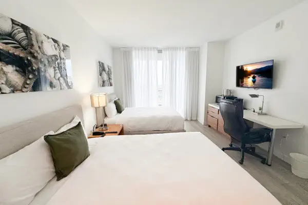Welcome to your elegant and inviting studio apartment at Beachwalk in the heart of Hallandale Beach. This chic space promises a unique experience, ideally situated to immerse yourself in the lively local scene. This Studio features a bedroom with 2 full-size beds, 1 spacious bathroom, and private WiFi. Enjoy resort amenities like a pool, dining, and local attractions. Check-in at 4 PM, check-out at 11 AM. Perfect for relaxation or exploring Hallandale Beach.