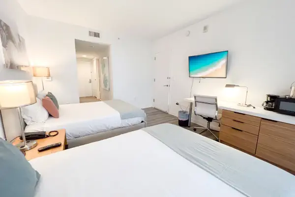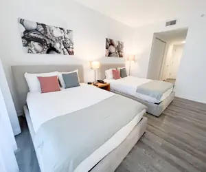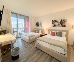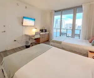 Welcome to your elegant and inviting studio apartment at Beachwalk in the heart of Hallandale Beach. This chic space promises a unique experience, ideally situated to immerse yourself in the lively local scene. This Studio features a bedroom with 2 full-size beds, 1 spacious bathroom, and private WiFi. Enjoy resort amenities like a pool, dining, and local attractions. Check-in at 4 PM, check-out at 11 AM. Perfect for relaxation or exploring Hallandale Beach.