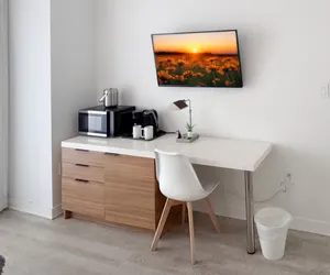 • Coffee maker, microwave, and a minibar fridge. For added convenience, the studio includes essential items such as towels and linens.
