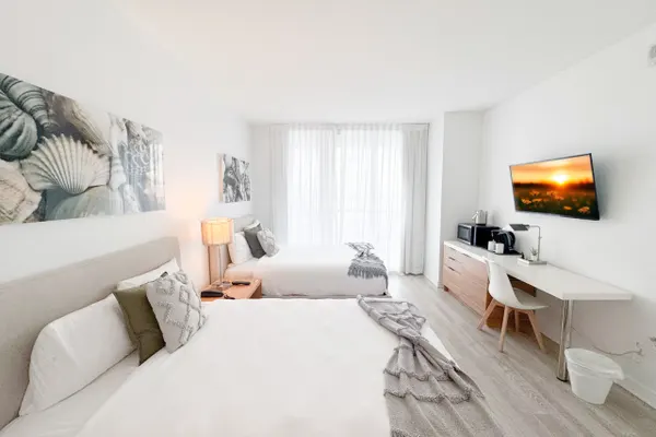 Welcome to your elegant and inviting studio apartment at Beachwalk in the heart of Hallandale Beach. This chic space promises a unique experience, ideally situated to immerse yourself in the lively local scene. This Studio features a bedroom with 2 full-size beds, 1 spacious bathroom, and private WiFi. Enjoy resort amenities like a pool, dining, and local attractions. Check-in at 4 PM, check-out at 11 AM. Perfect for relaxation or exploring Hallandale Beach.