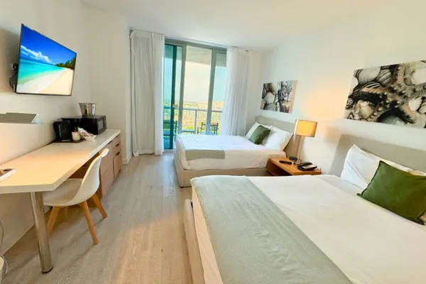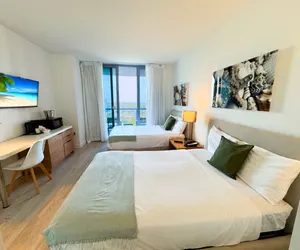 Welcome to your elegant and inviting studio apartment at Beachwalk in the heart of Hallandale Beach. This chic space promises a unique experience, ideally situated to immerse yourself in the lively local scene. This Studio features a bedroom with 2 full-size beds, 1 spacious bathroom, and private WiFi. Enjoy resort amenities like a pool, dining, and local attractions. Check-in at 4 PM, check-out at 11 AM. Perfect for relaxation or exploring Hallandale Beach.