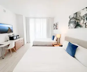 Welcome to your elegant and inviting studio apartment at Beachwalk in the heart of Hallandale Beach. This chic space promises a unique experience, ideally situated to immerse yourself in the lively local scene. This Studio features a bedroom with 2 full-size beds, 1 spacious bathroom, and private WiFi. Enjoy resort amenities like a pool, dining, and local attractions. Check-in at 4 PM, check-out at 11 AM. Perfect for relaxation or exploring Hallandale Beach.