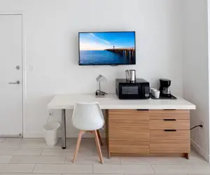 - Coffee maker, microwave, and a minibar fridge. For added convenience, the studio includes essential items such as towels and linens.