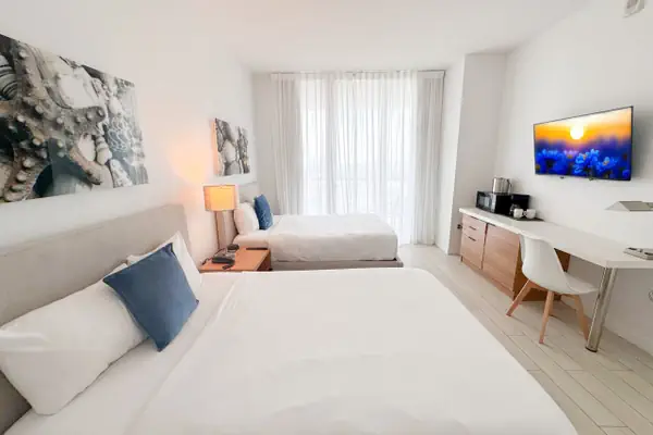 Welcome to your elegant and inviting studio apartment at Beachwalk in the heart of Hallandale Beach. This chic space promises a unique experience, ideally situated to immerse yourself in the lively local scene. This Studio features a bedroom with 2 full-size beds, 1 spacious bathroom, and private WiFi. Enjoy resort amenities like a pool, dining, and local attractions. Check-in at 4 PM, check-out at 11 AM. Perfect for relaxation or exploring Hallandale Beach.