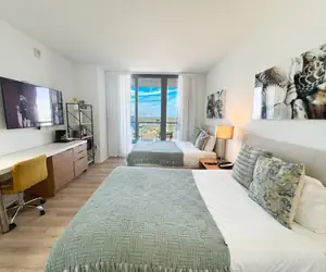 Welcome to your elegant and inviting studio apartment at Beachwalk in the heart of Hallandale Beach. This chic space promises a unique experience, ideally situated to immerse yourself in the lively local scene. This Studio features a bedroom with 2 full-size beds, 1 spacious bathroom, and private WiFi. Enjoy resort amenities like a pool, dining, and local attractions. Check-in at 4 PM, check-out at 11 AM. Perfect for relaxation or exploring Hallandale Beach.
