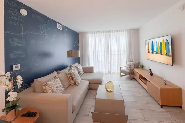 Our luxurious 2-bedroom apartment in Hallandale Beach, is located in one of the best condo-hotels in Hallandale Beach, called BeachWalk. This modern apartment features a master bedroom and an additional bedroom, both with private bathrooms, ensuring you have everything you need for a comfortable stay, whether for a weekend getaway or a longer stay.