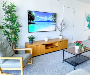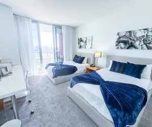 Our luxurious 2-bedroom apartment in Hallandale Beach, is located in one of the best condo-hotels in Hallandale Beach, called BeachWalk. This modern apartment features a master bedroom and an additional bedroom, both with private bathrooms, ensuring you have everything you need for a comfortable stay, whether for a weekend getaway or a longer stay.