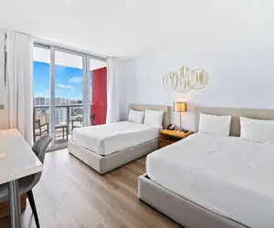 Welcome to your elegant and inviting studio apartment at Beachwalk in the heart of Hallandale Beach. This chic space promises a unique experience, ideally situated to immerse yourself in the lively local scene. This Studio features a bedroom with 2 full-size beds, 1 spacious bathroom, and private WiFi. Enjoy resort amenities like a pool, dining, and local attractions. Check-in at 4 PM, check-out at 11 AM. Perfect for relaxation or exploring Hallandale Beach.