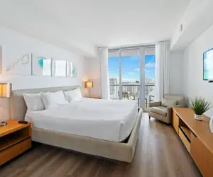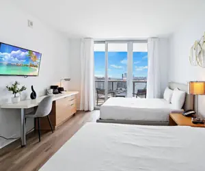 Our luxurious 2-bedroom apartment in Hallandale Beach, is located in one of the best condo-hotels in Hallandale Beach, called BeachWalk. This modern apartment features a master bedroom and an additional bedroom, both with private bathrooms, ensuring you have everything you need for a comfortable stay, whether for a weekend getaway or a longer stay.