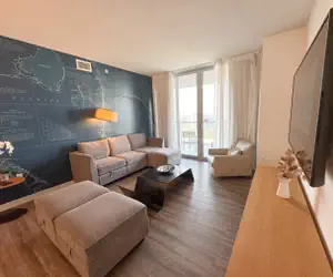 The apartment is designed for both relaxation and work, offering a perfect blend of functionality and comfort for all types of travelers.