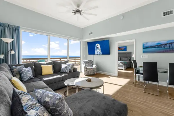 Your perfect beach escape awaits in this beautifully remodeled ground-floor condo! Enjoy easy access—no elevators needed—and a prime location just steps from the pools, hot tubs, fitness room and game room. The modern kitchen is fully equipped for all your culinary creations, with dining options at the breakfast bar or a table for four. Unwind in the cozy living area while soaking in Gulf views, or retreat to the furnished patio to savor the fresh sea air.