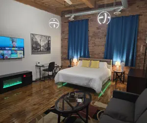 Welcome to the Detroit Cadillac Loft, a cozy retreat ideal for couples and business travelers. Located near major attractions, this renovated loft features a full kitchen, spacious living area, and a comfortable bedroom. Enjoy modern amenities like Wi-Fi, air conditioning, and a hot tub for relaxation. With easy access to the city, you can explore Detroit effortlessly while enjoying a home-like atmosphere during your stay.