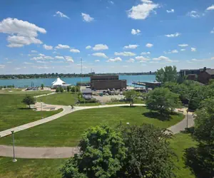 ✔ Stunning views of Mt. Elliott Park and the Detroit Riverwalk