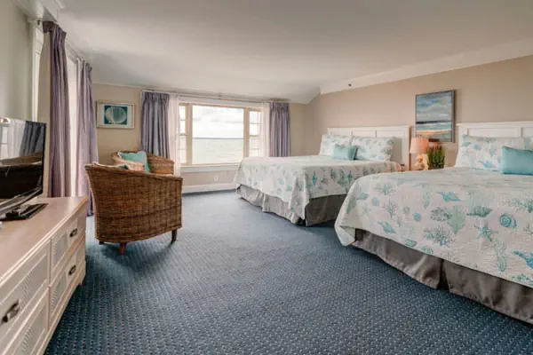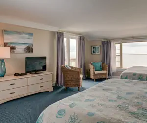 Wake up to sweeping ocean views in this spacious studio featuring two king beds, a private deck, and a convenient kitchenette for light meals. Perfect for up to 4 guests, this bright coastal retreat combines comfort with unbeatable scenery.