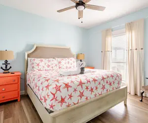 Nothing beats the sound of the waves and the ocean breeze in the morning. That’s what you’ll enjoy at the Red Mermaid Retreat, an awesome 4-bedroom beach house, where you can walk to the beach in seconds! This home is cozy and elegant, with everything you need to have a blast. You can also cook a yummy meal in the kitchen, snuggle on the sofa with a book, or sip a drink on the balcony, while making memories with your loved ones.