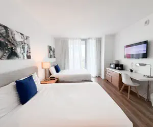 Our luxurious 2-bedroom apartment in Hallandale Beach, is located in one of the best condo-hotels in Hallandale Beach, called BeachWalk. This modern apartment features a master bedroom and an additional bedroom, both with private bathrooms, ensuring you have everything you need for a comfortable stay, whether for a weekend getaway or a longer stay.