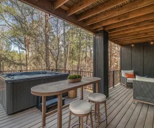 Highlights: Riverfront Hot Tub • Designer Interior