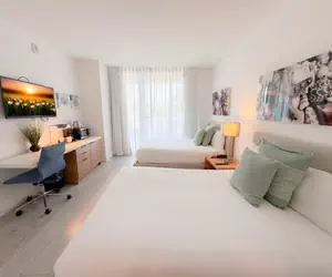 Our luxurious 2-bedroom apartment in Hallandale Beach, is located in one of the best condo-hotels in Hallandale Beach, called BeachWalk. This modern apartment features a master bedroom and an additional bedroom, both with private bathrooms, ensuring you have everything you need for a comfortable stay, whether for a weekend getaway or a longer stay.