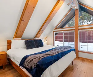Totally updated, cozy, spacious cabin with 100% new furniture in excellent King's Beach neighborhood, minutes to beach/town, all things Tahoe, & steps to trails. Entire house has new AC (very rare for Tahoe!) Huge front deck w private hot-tub, BBQ, outdoor dining. Open living space w/ floor to ceiling windows on main floor. Well appointed, heated floors, all new furniture, A+ amenities, fully stocked kitchen, gourmet coffee bar, bunk room, projector, game room with foosball & games. 5-star host.