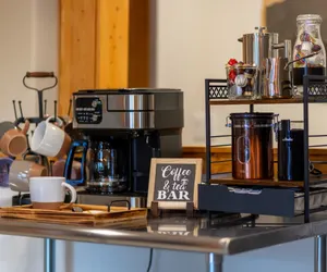 - Deluxe coffee bar with Peet's K-cups, espresso, drip, hot chocolate, tea, honey sticks, sweeteners and fresh cream