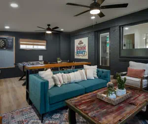 But that’s not all—head on over to the back Game Room and second living space, featuring a second 65” Smart TV, an eat-up bar with stadium seating for three, additional dining for four, and four comfy lounge chairs. Test your skills at the foosball table, dart board, or massive checkers board, or dive into the board games galore—there’s never a dull moment at The Dunn Right!