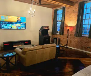 Discover stunning views of the MacArthur Bridger to Belle Isle, The Detroit River and Windsor, Canada, right from your window. This charming studio loft combines comfort and style with its exposed brick, 12-foot ceilings, and wooden beams. Enjoy a run on Detroit’s scenic Riverwalk or take a leisurely walk to Hart Plaza and the GM Center downtown. Perfectly situated, the Detroit Riverwalk Loft offers easy access to many of Detroit’s top attractions, making it an excellent choice for both weekend getaways and short-term relocations.