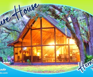 The Nature House is a secluded cabin retreat nestled alongside a canal with access to the Withlacoochee River. You can launch from the backyard!