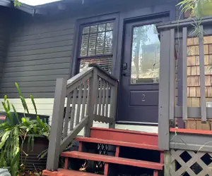 Enter through the right courtyard through white side gate. Unit #2 is the second set of stairs in front of the round outdoor table. Keypad entry for self check in. Please enter door code and turn the lock then knob. If the light is green but does not turn correctly please give it a minute and try again. If the light is red; the number is wrong or you are at the wrong door.
