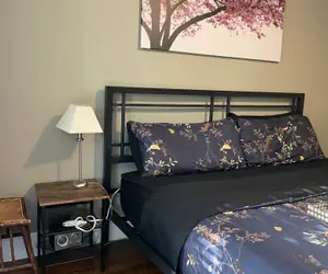 Welcome to "The Gem" uptown King bedroom apt!It features a king-sized bed with small walking space and original art on the wall and an updated private bathroom that consist of necessary amenities for light packing travelers. This stylish suite is full of light and good vibes, perfect for a romantic couples retreat or solo adventurer. Enjoy your stay and complimentary coffee & tea next to the mini fridge and microwave! We also have Hulu and Netflix which you can get to from the Roku homepage.