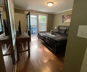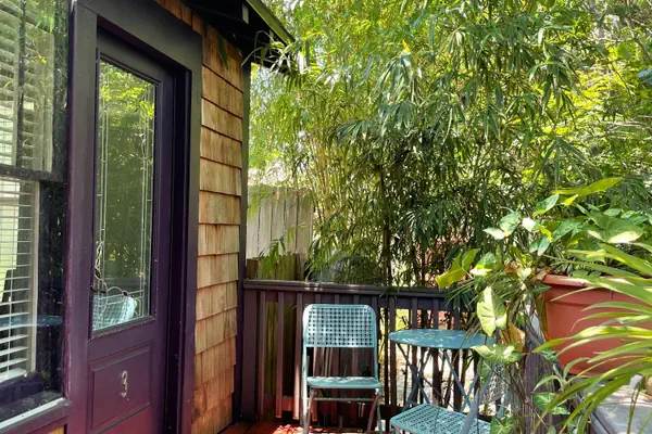 Enter through the right courtyard through white side gate. Entry to unit is at the end of the home; up the stairs and to the right to Unit 3. This king suite has a small front-side deck. Keypad entry for self check in. Turn lock immediately after putting in door code. To lock, door code and turn lock. If the light is green but does not turn correctly please give it a minute and try again. Turn lock immediately after putting door code.