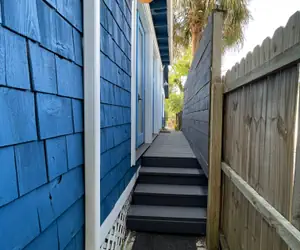 Secret Chef is a spacious king suite in a multifamily home. It features a pull-out sofa and chair in the bedroom, as well as a desk and chair in the entryway for work/study purposes. The property has a total of five units with private entrances and is conveniently located next to busy US-1. Located a few blocks away from the best uptown restaurants and shops, and within walking distance to historical sites. It's a 10-minute walk to the fort and 15 minutes to St. George. Grocery stores such as Aldi, Publix, and Winn Dixie are nearby for those who enjoy cooking. Free street parking is available in front and 40-amp EV charging in the back and extra spaces. The shared garden has seating and tables for guests to enjoy, as well as a grill for cooking local fish. The beach is only a 10-minute drive away. You can bring your furry friends along for the ride (limit 2 pets) for a small fee of $25 cash; No cats or other animals allowed on property.