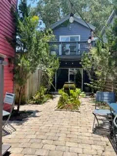 The Safe Haven House lives behind our Hide-Out property (The main house) and is very private. Originally the carriage house for the property, it was renovated by the previous owners into a painting studio & apartment. One private parking available in front of private gate and free street parking available after stop sign when turning onto property street. Downstairs sitting area with full kitchen and lovely decor. Upstairs is the queen bed with en suite bath: shower and sink are separated from the bedroom by a curtain; the toilet is behind in its own closed room. We love this space for the light and artistic romance of it; one of its most delightful aspects is the access to the outdoors. Step out the back door and you will find yourself in a very serene, very private walled garden. Have your morning coffee on the upstairs deck that overlooks the shared garden or toast and cereal in the private garden with gorgeous angles of sunlight in the early morning. Take a walk a couple blocks east and you are on the intracoastal waterway. Life is cozy and relaxed here. A note on ambiance: It is a quiet neighborhood albeit connected to a very busy tourist town. You will hear people, cars, the cannon fire at the fort, church chimes and the occasional trolley in the daytime. This includes the Firestone during their regular hours. *Off street parking is provided for one small to mid sized vehicle. Full sized trucks and SUVs will have to use free public on street parking. For the grilling types, we have a charcoal grill in the shared garden. -Dogs must be on a leash at all times and clean up after your pets. -Security Cameras are on the property -Only guests on reservation are allowed on the property.