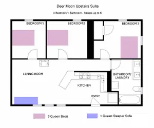 The Deer Moon unit is an upstairs 3 bedroom 1 bathroom unit equipped with brand new washer/dryer and appliances.