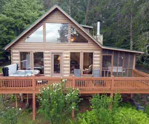 As you venture outside, you'll find yourself immersed in the peace and seclusion of a large wooded lot, offering a short-range mountain view that is truly breathtaking. Indulge in relaxation with a soak in the inviting hot tub or gather around the crackling firepit for cozy evenings under a star-filled sky. The screened porch is the perfect spot to unwind with a good book or sip your morning coffee while immersing yourself in nature's symphony.