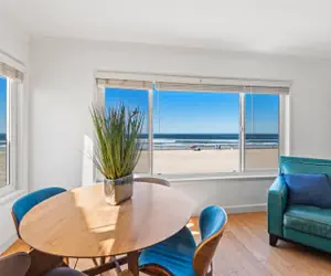 Walk right down to the soft sands from this oceanfront 2BR/2BA condo, located directly on gorgeous Mission Beach. Part of a small six-unit complex that can sleep 38 more! Your beautifully updated getaway provides panoramic ocean views, family-friendly amenities, and a tranquil master suite.
