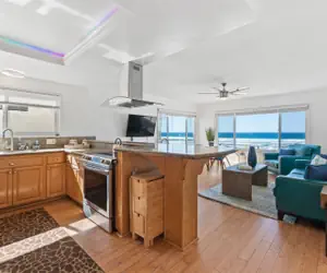 Stream favorite shows on the 55” smart TV while dinner simmers in the gourmet kitchen -- or host a cookout at the beachfront grilling area. Situated at the edge of Mission Beach and Pacific Beach, you’ll enjoy high walkability to an array of local eateries, pubs, and entertainment venues.