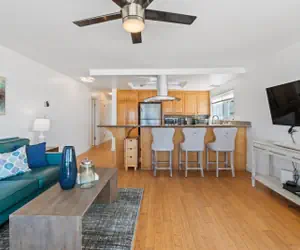 THE LOCATION: Tucked away on the border of Mission Beach and Pacific Beach, you’ll enjoy high walkability to restaurants and entertainment venues. Head to Belmont Park (7 minutes) or SeaWorld San Diego (12 minutes) for family-friendly thrills. Balboa Park attractions, downtown San Diego hot spots, and the San Diego International Airport are all within a 17-minute ride.