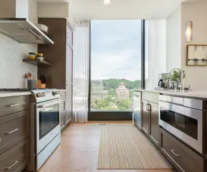 True to its name, Panoramic Pack Square provides an unobstructed 120-degree view of downtown’s iconic Pack Square Park and sweeping views of the mountains featuring the historic Grove Park Inn to the north and Biltmore Estate grounds to the south. Whether you’re staying for a week or an entire season, this inviting east facing, one-bedroom, one-bath condo comes fully equipped with all the comforts of home.